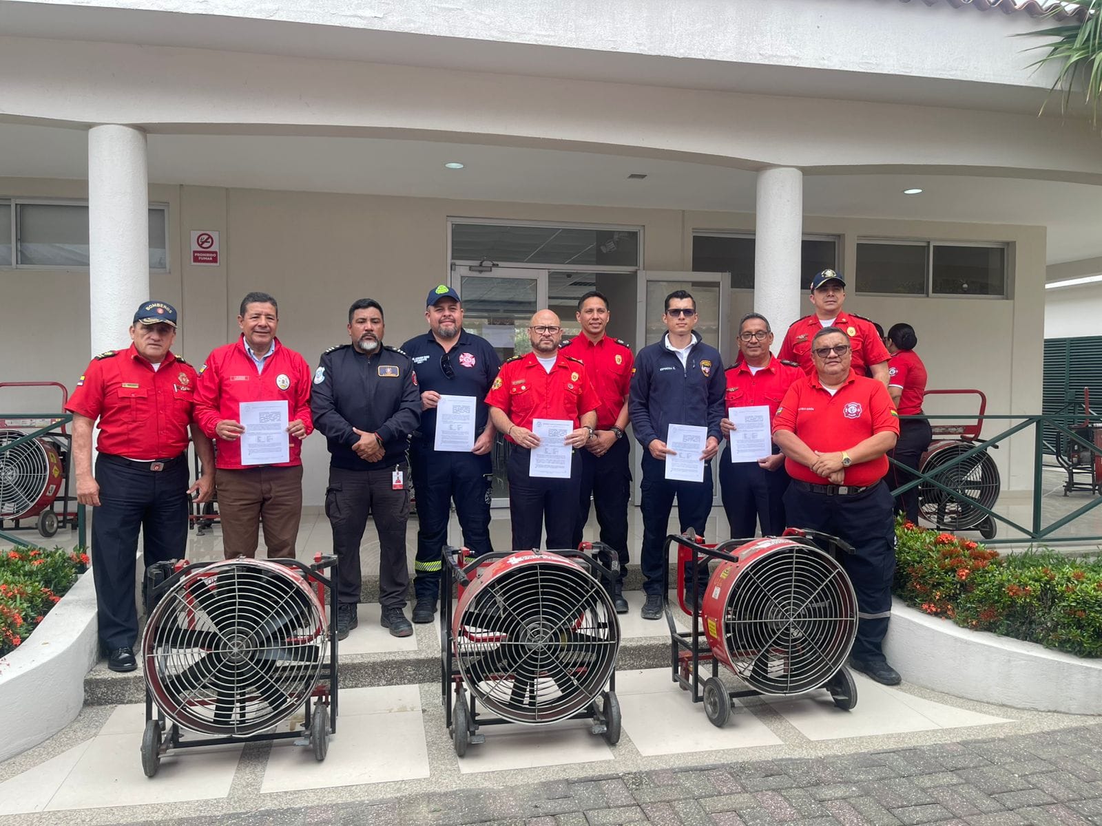 Capitán y jefes de diferentes cuerpos de bomberos de la provincia asisten a reunión realizada en el marco de la visita protocolaria de la Secretaría Nacional de Gestión de Riesgos del Ecuador, Carolina Lozano Haro....
