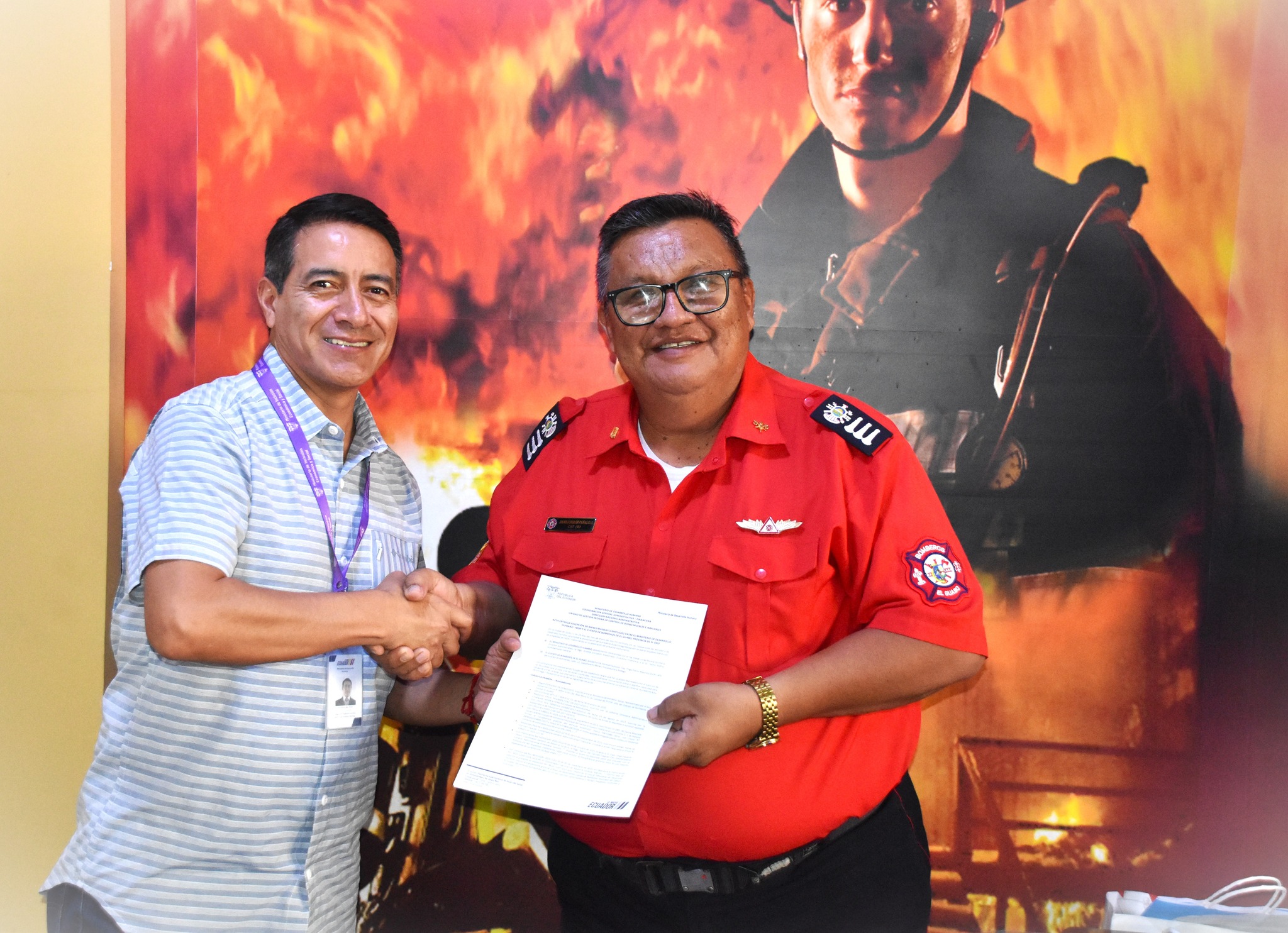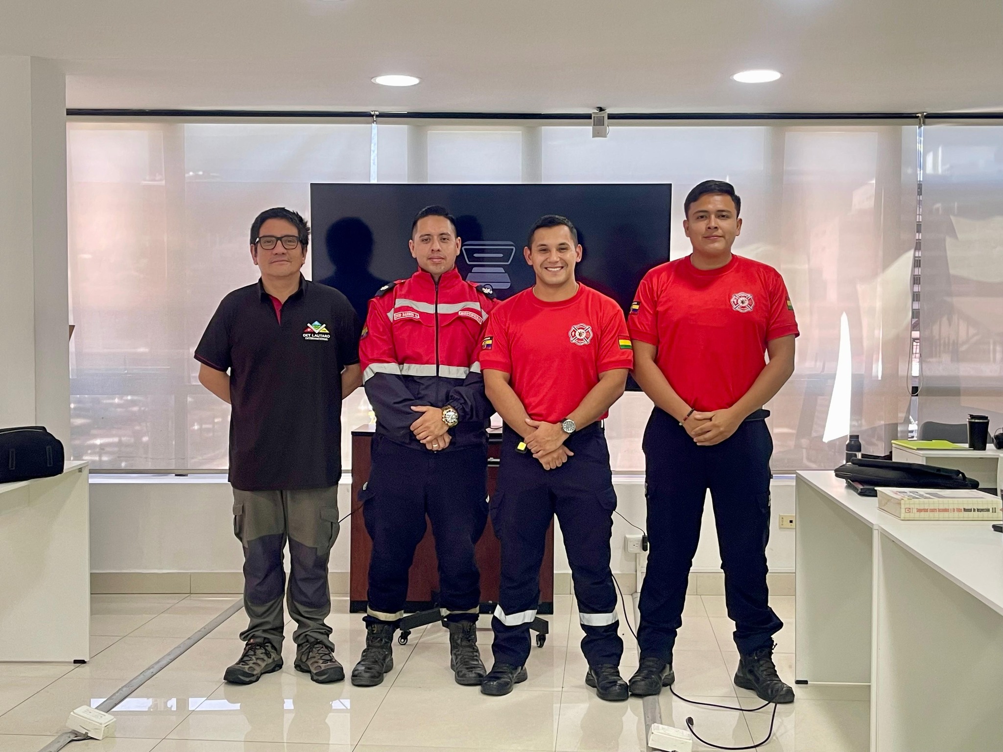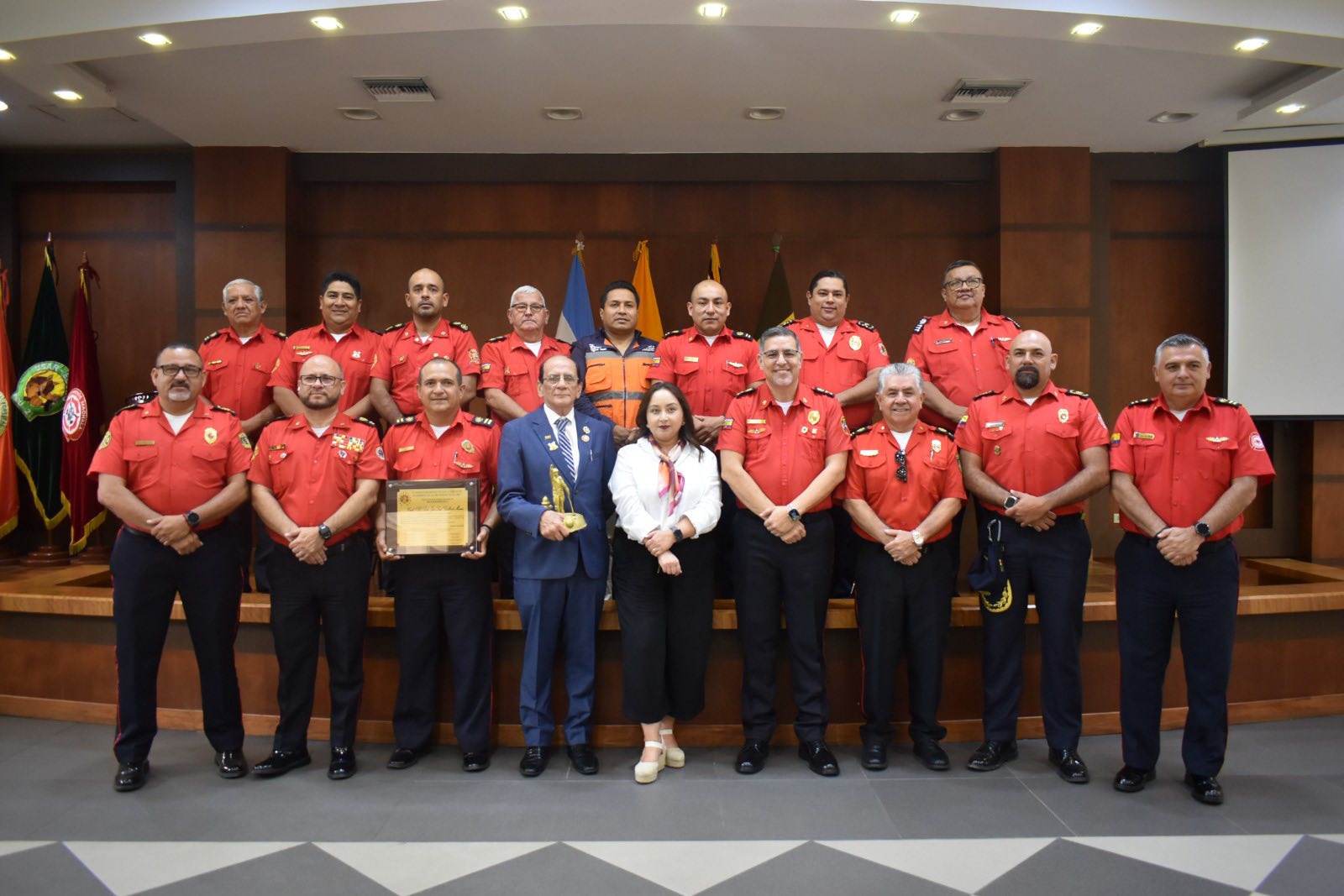 Capitán y jefes de diferentes cuerpos de bomberos de la provincia asisten a reunión realizada en el marco de la visita protocolaria de la Secretaría Nacional de Gestión de Riesgos del Ecuador, Carolina Lozano Haro....